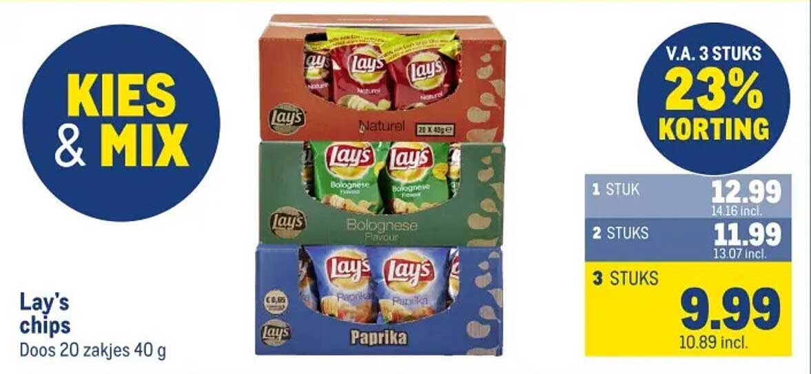 Bekijk de Lay's Chips aanbieding bij Makro! Deze fantastische aanbieding is nu beschikbaar in de nieuwste Makro folder. Profiteer van deze kans en bespaar flink op je aankoop.