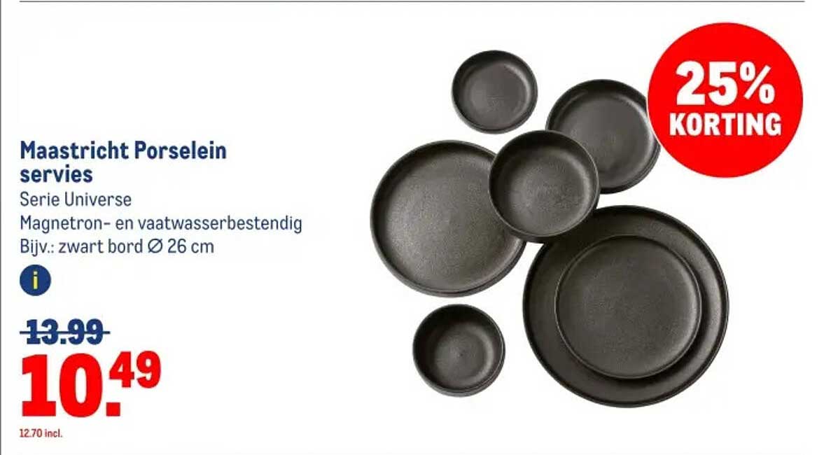 Ben je op zoek naar stijlvol en duurzaam servies? Kijk dan niet verder! Dit prachtige Maastricht Porselein servies uit de serie Universe is perfect voor iedere gelegenheid. Met een elegant zwart ontwerp dat tijdloos is, biedt het een moderne uitstraling aan je tafel. De aanbieding van 25% korting maakt dit de ideale gelegenheid om je serviescollectie een upgrade te geven.