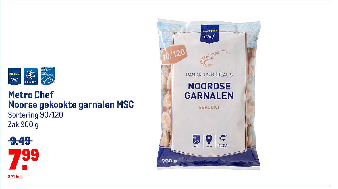 Metro Chef Noorse Gekookte Garnalen Msc aanbieding bij Makro