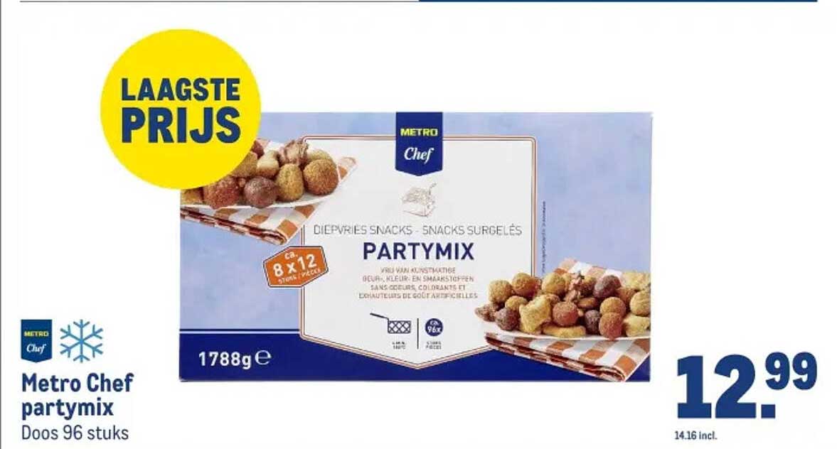Maak je feest compleet met de Metro Chef partymix, een heerlijk assortiment diepvries snacks die perfect zijn voor elk moment. Of je nu een feestje organiseert of gewoon zin hebt in een lekkere snack, deze partymix biedt de perfecte combinatie van smaken en texturen. En dat alles tegen een geweldige prijs!