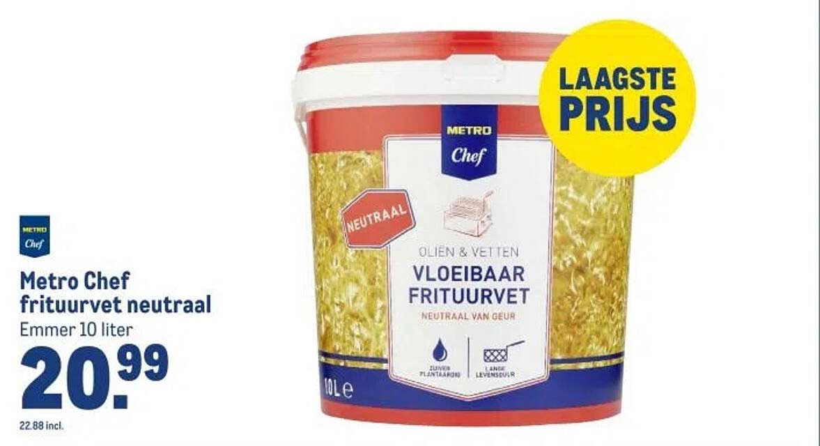 Bekijk nu de Metro Chef vloeibaar frituurvet neutraal Emmer 10 liter aanbieding in de Makro folder. Deze aanbieding is geldig van 19-11-2025 tot en met 02-12-2025.