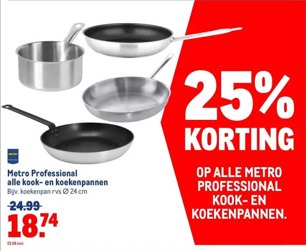 Bekijk de Metro Professional Alle Kook- En Koekenpannen aanbieding bij Makro! Deze fantastische aanbieding is nu beschikbaar in de nieuwste Makro folder. Profiteer van deze kans en bespaar flink op je aankoop.
