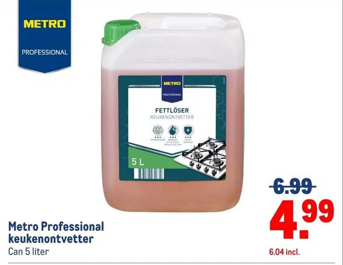 Maak kennis met de Metro Professional keukenontvetter, de ideale oplossing voor een brandschone keuken. Deze krachtige ontvetter is speciaal ontwikkeld voor professioneel gebruik en zorgt ervoor dat vet en vuil geen schijn van kans maken. Deze aanbieding is perfect voor zowel thuisgebruik als voor in de horeca, en is nu tijdelijk verkrijgbaar tegen een scherpe prijs!