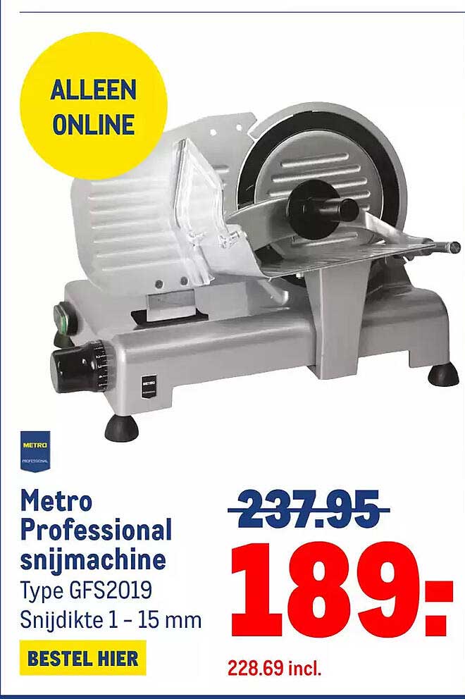 Bekijk de Metro Professional Snijmachine aanbieding bij Makro! Deze fantastische aanbieding is nu beschikbaar in de nieuwste Makro folder. Profiteer van deze kans en bespaar flink op je aankoop.