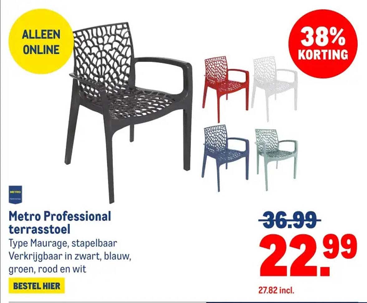 Bekijk nu de Metro Professional terrasstoel aanbieding in de Makro folder. Deze aanbieding is geldig van 09-04-2025 tot en met 22-04-2025.