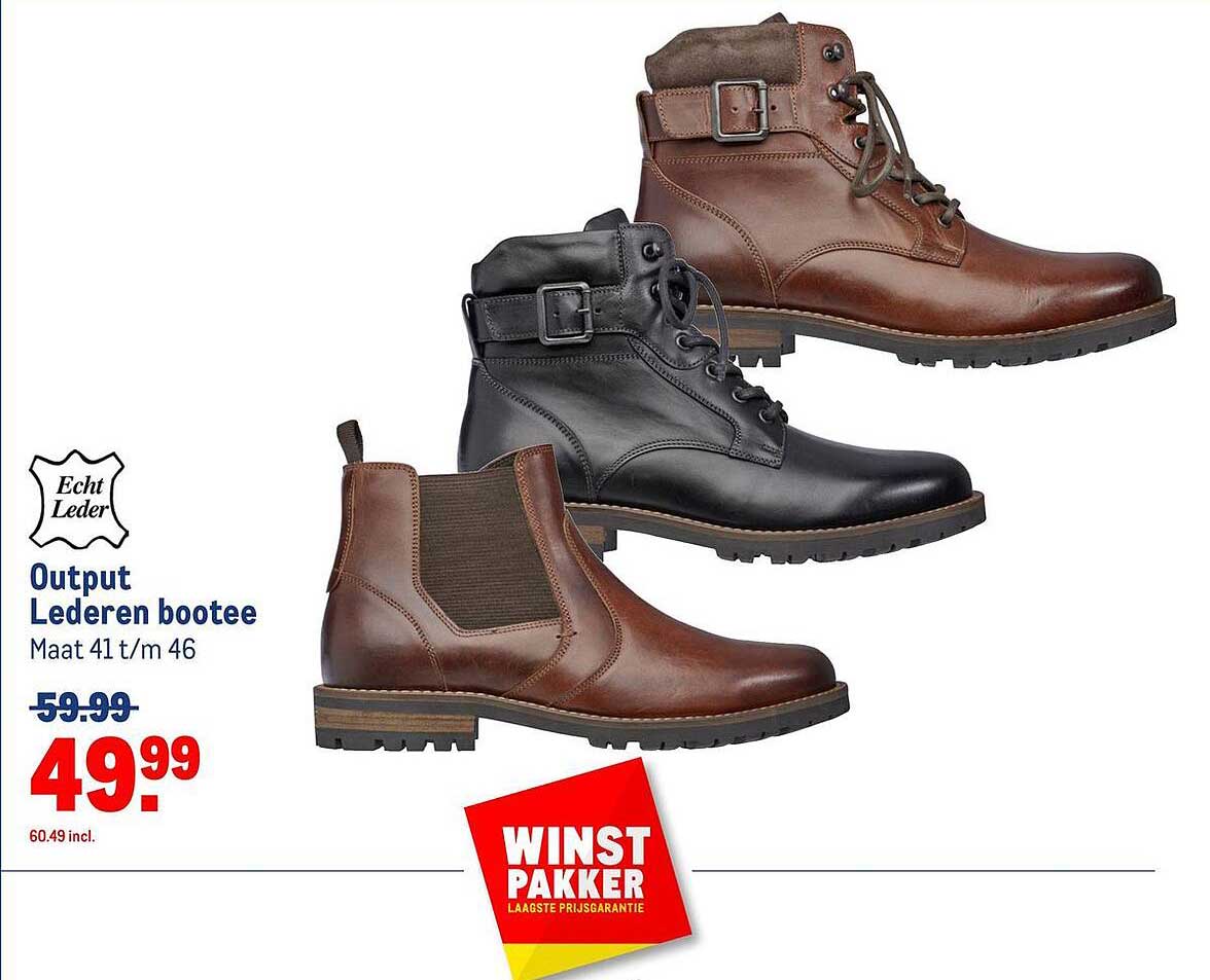 Bekijk de Output Lederende Bootee aanbieding bij Makro! Deze fantastische aanbieding is nu beschikbaar in de nieuwste Makro folder. Profiteer van deze kans en bespaar flink op je aankoop.
