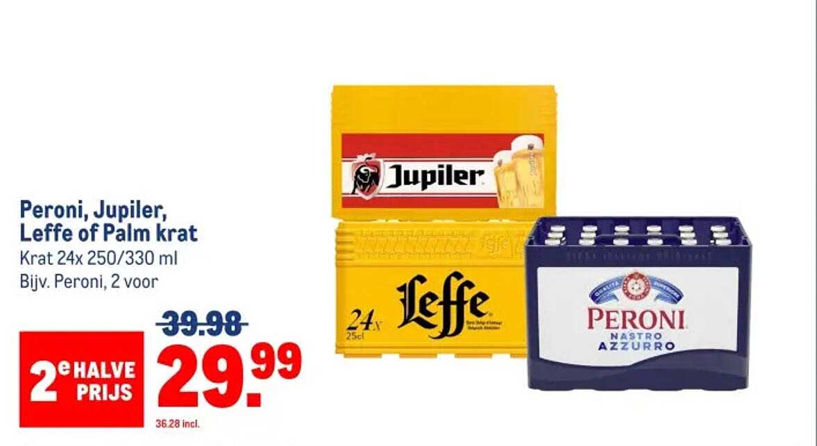 Peroni, Jupiler, Leffe Of Palm Krat aanbieding bij Makro