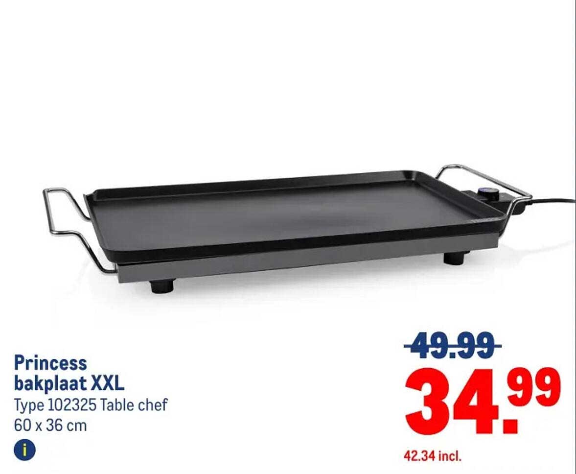 Bekijk nu de Princess bakplaat XXL aanbieding in de Makro folder. Deze aanbieding is geldig van 19-11-2025 tot en met 02-12-2025.