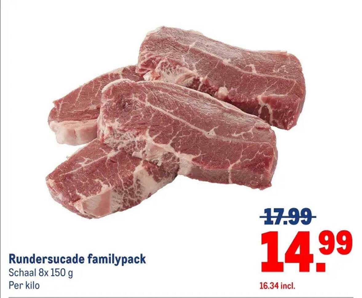 Bekijk nu de Rundersucade familypack aanbieding in de Makro folder. Deze aanbieding is geldig van 08-10-2025 tot en met 21-10-2025.