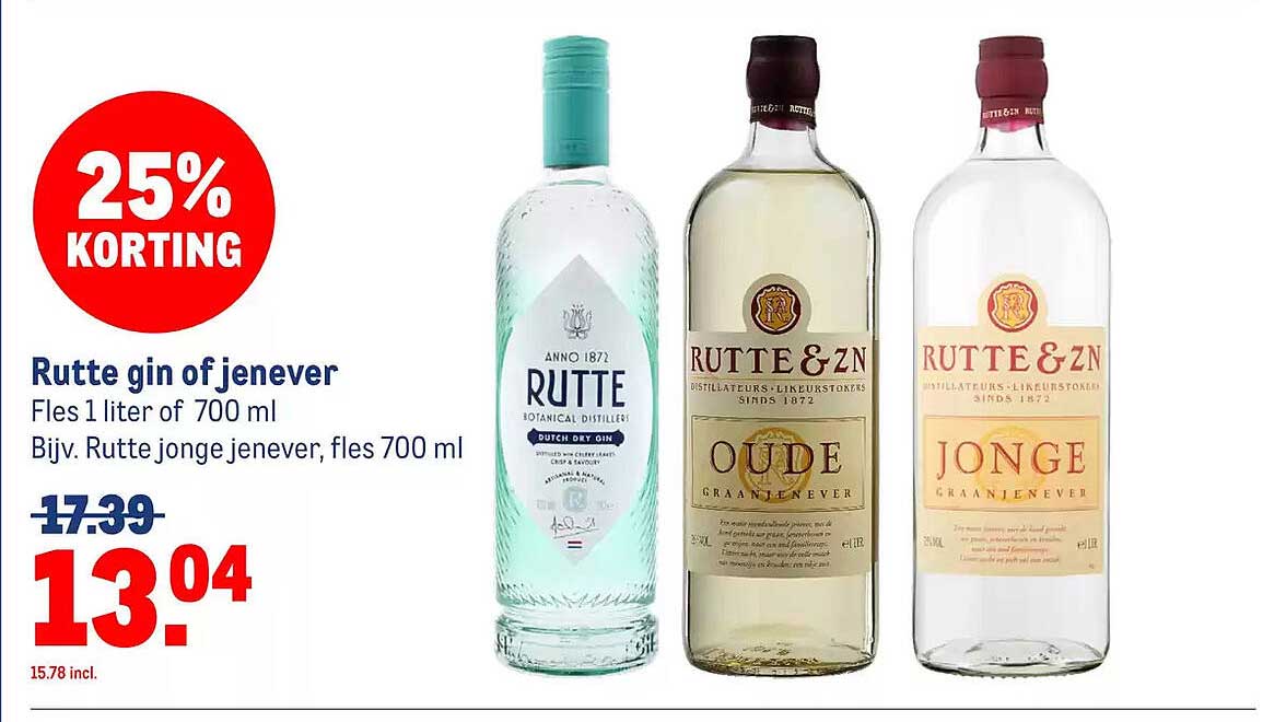 Bekijk nu de Rutte gin of jenever aanbieding in de Makro folder. Deze aanbieding is geldig van 24-12-2024 tot en met 31-12-2024.