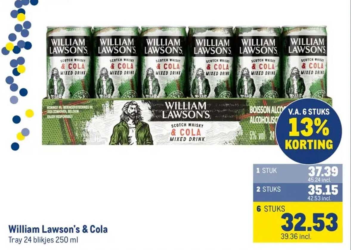 Bekijk de William Lawson's & Cola aanbieding bij Makro! Deze fantastische aanbieding is nu beschikbaar in de nieuwste Makro folder. Profiteer van deze kans en bespaar flink op je aankoop.