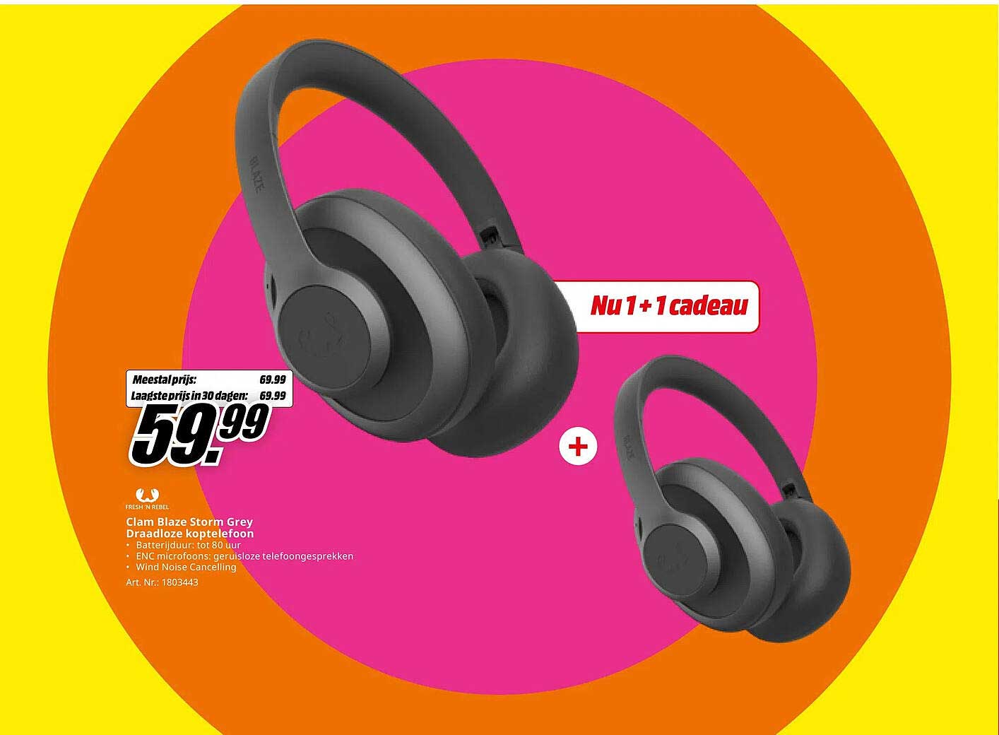 Bekijk nu de Claim Blaze Storm Grey Draadloze koptelefoon aanbieding in de MediaMarkt folder. Deze aanbieding is geldig van 07-11-2025 tot en met 01-12-2025.