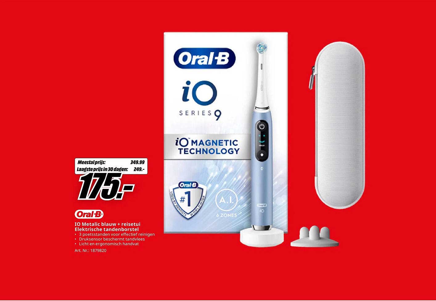 Bekijk nu de Oral-B iO Metallic blauw + reisetui Elektrische tandenborstel aanbieding in de MediaMarkt folder. Deze aanbieding is geldig van 07-11-2025 tot en met 01-12-2025.