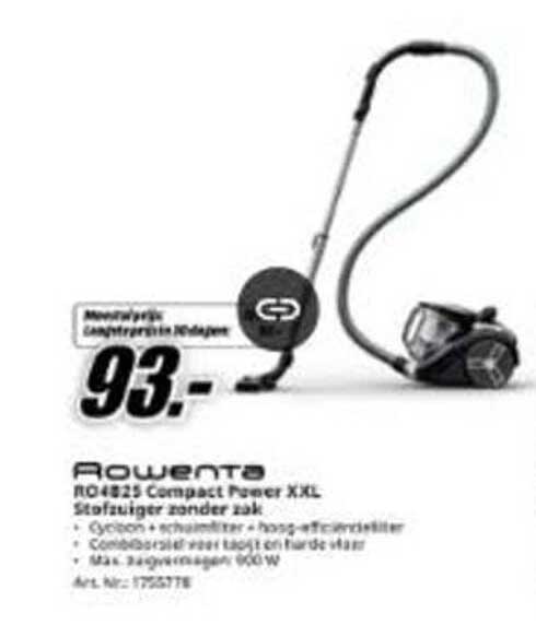 Bekijk nu de Rowenta RO4825 Compact Power XXL Stofzuiger zonder zak aanbieding in de MediaMarkt folder. Deze aanbieding is geldig van 04-08-2025 tot en met 10-08-2025.