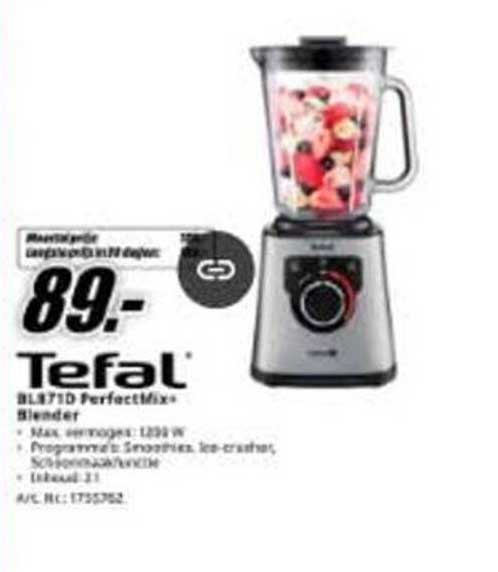 Ben je op zoek naar een krachtige blender die je helpt de heerlijkste smoothies en soepen te maken? Dan is de Tefal BL871D PerfectMix® Blender iets voor jou! Deze aanbieding van MediaMarkt biedt je deze veelzijdige keukenheld voor een fantastische prijs van slechts €89,- van 4 tot en met 10 augustus 2025. Wacht niet te lang, want dit is de kans om jouw keuken naar een hoger niveau te tillen!