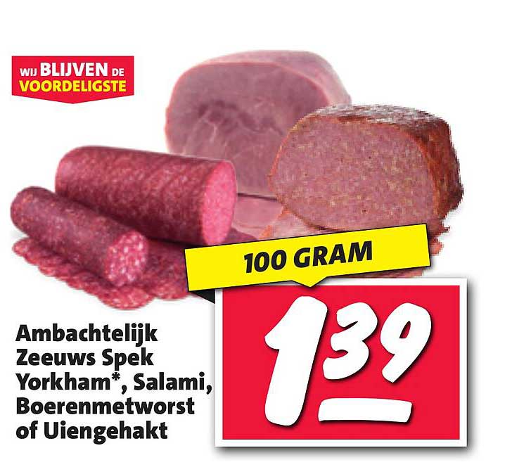 Bekijk nu de Ambachtelijk Zeeuws Spek Yorkham*, Salami, Boerenmetworst of Uiengehakt aanbieding in de Nettorama folder. Deze aanbieding is geldig van 31-03-2025 tot en met 06-04-2025.