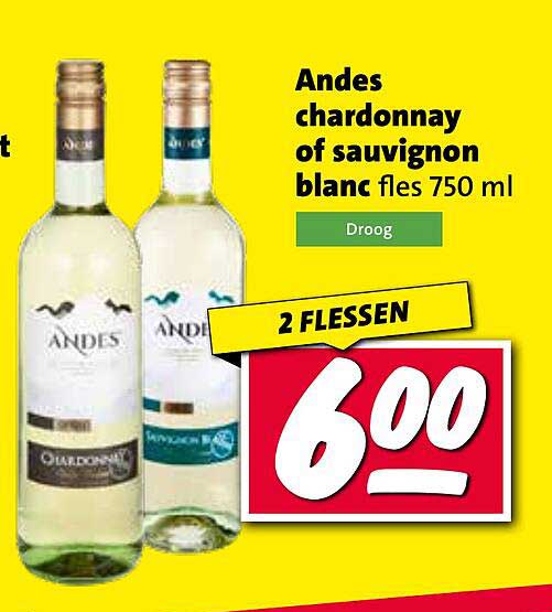 Bekijk nu de Andes chardonnay of sauvignon blanc fles 750 ml aanbieding in de Nettorama folder. Deze aanbieding is geldig van 21-07-2025 tot en met 27-07-2025.