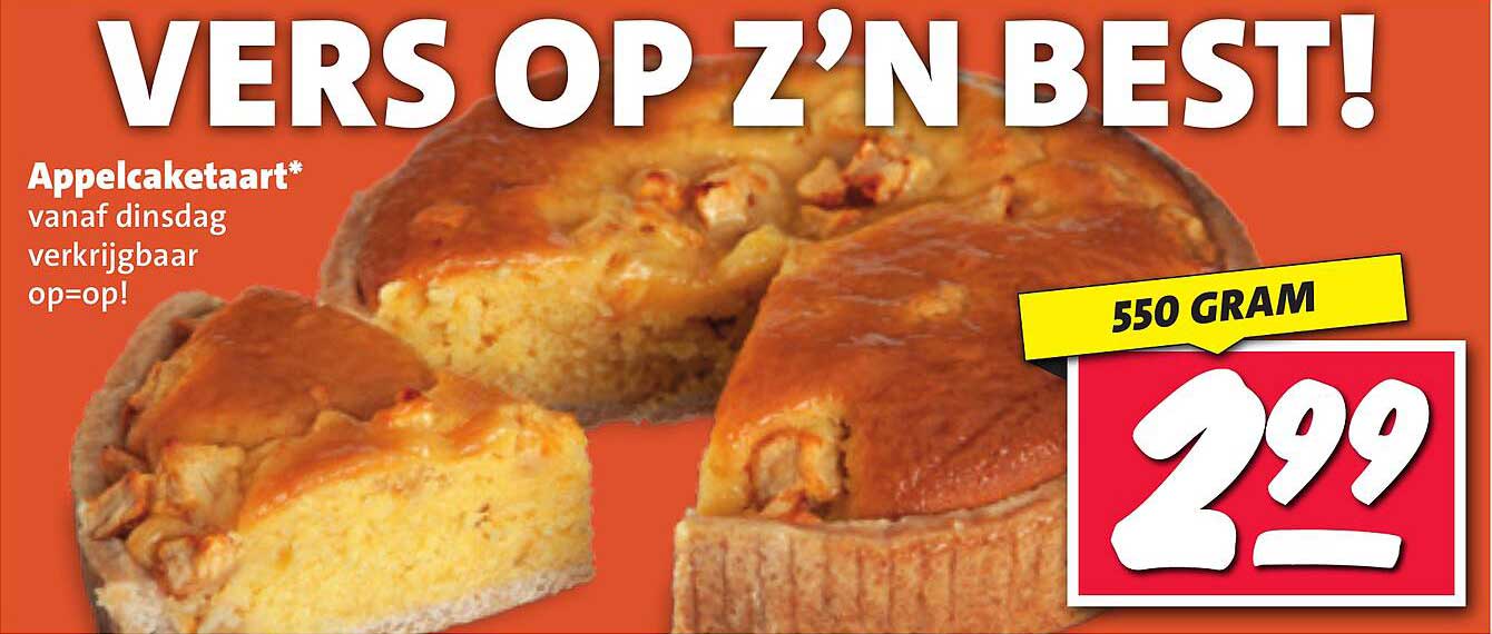 Bekijk nu de Appelcaketaart* vanaf dinsdag verkrijgbaar op=op! aanbieding in de Nettorama folder. Deze aanbieding is geldig van 31-03-2025 tot en met 06-04-2025.