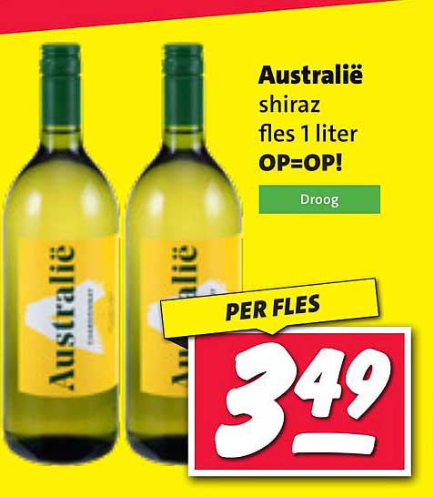 Bekijk nu de Australië shiraz fles 1 liter OP=OP! aanbieding in de Nettorama folder. Deze aanbieding is geldig van 19-05-2025 tot en met 25-05-2025.