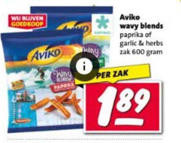 Bekijk nu de Aviko wavy blends paprika of garlic & herbs zak 600 gram aanbieding in de Nettorama folder. Deze aanbieding is geldig van 26-06-2025 tot en met 29-06-2025.