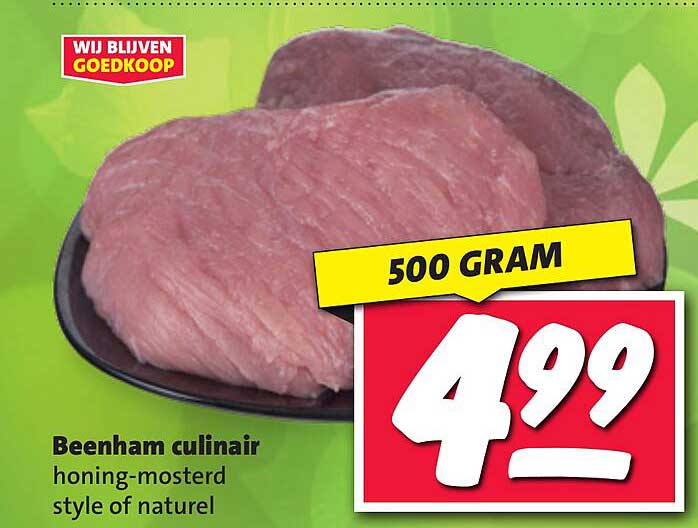 Met een scherpe prijs van slechts €4,99 is dit een aanbieding die je niet wilt laten liggen. Vergelijk dit met de normale prijs van beenham in de supermarkt en je zult zien dat je hier een significante besparing kunt doen. Kwaliteit en goede smaak voor een aantrekkelijke prijs - dat is wat deze aanbieding zo bijzonder maakt!