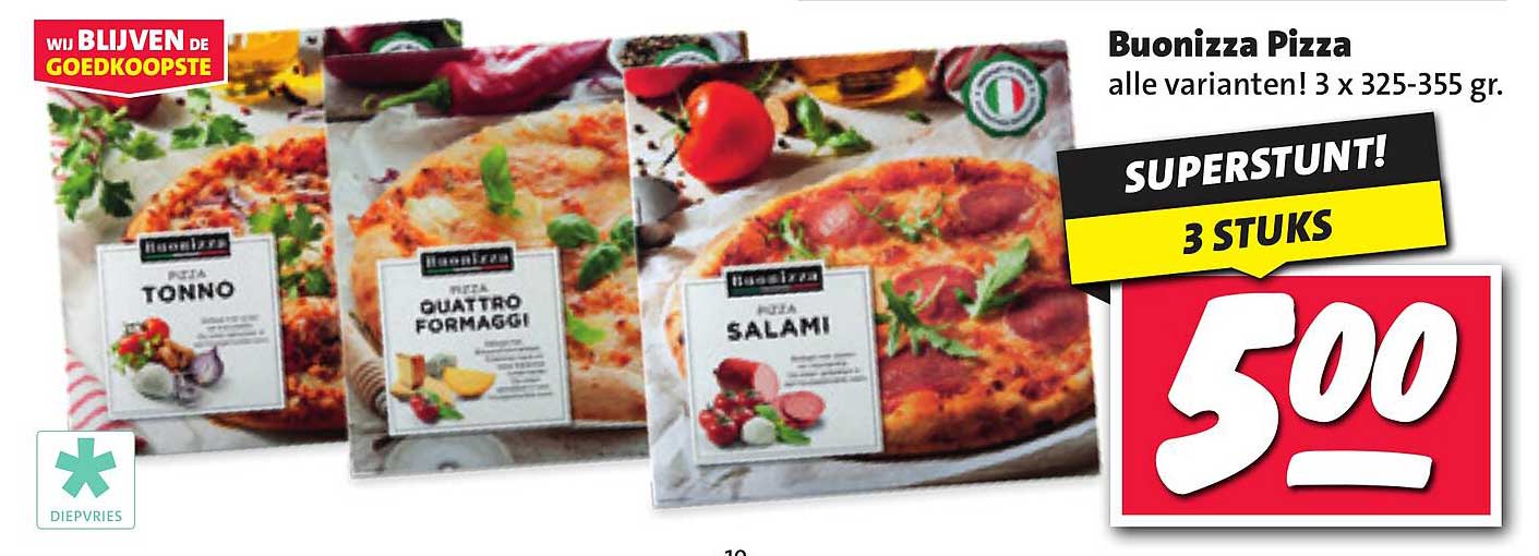 Ontdek de geweldige Buonizza Pizza aanbieding in de nieuwste Nettorama folder. Naast deze aanbieding vind je nog veel meer aantrekkelijke kortingen. Je kunt de Buonizza Pizza eenvoudig online bestellen via de Nettorama website of kopen in een winkel bij jou in de buurt.