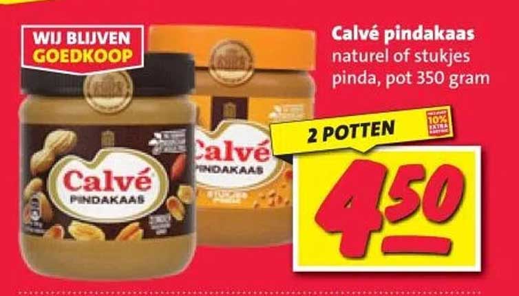 Heb je ook zo’n zin in een heerlijk broodje met pindakaas? Of wil je gewoon een lekkere dip voor je appeltjes? Kijk dan niet verder - op deze pagina vind je een fantastische aanbieding voor Calvé pindakaas! Deze pindakaas is verkrijgbaar in zowel de naturel als de variant met stukjes pinda. Met deze aanbieding kun je twee potten meenemen voor een scherpe prijs!