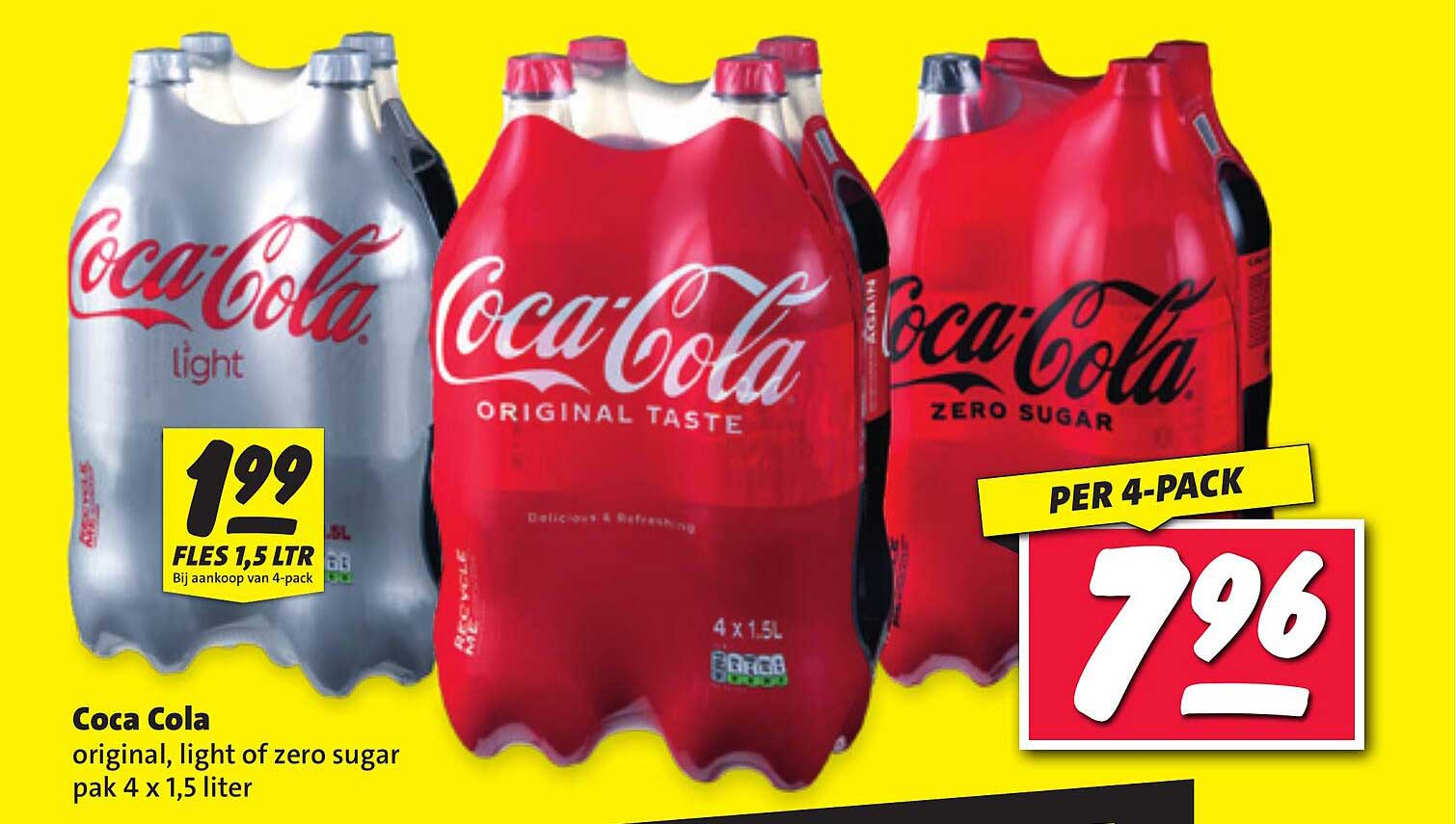 Coca Cola Original, Light Of Zero Sugar Pak 4 X 1,5 Liter aanbieding bij Nettorama