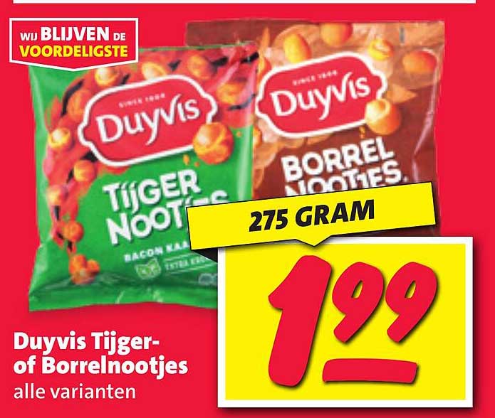 Bekijk nu de Duyvis Tijger- of Borrelnootjes alle varianten aanbieding in de Nettorama folder. Deze aanbieding is geldig van 24-03-2025 tot en met 30-03-2025.