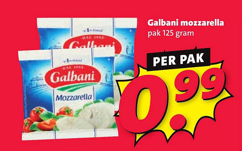 Bekijk nu de Galbani mozzarella pak 125 gram aanbieding in de Nettorama folder. Deze aanbieding is geldig van 13-10-2025 tot en met 19-10-2025.