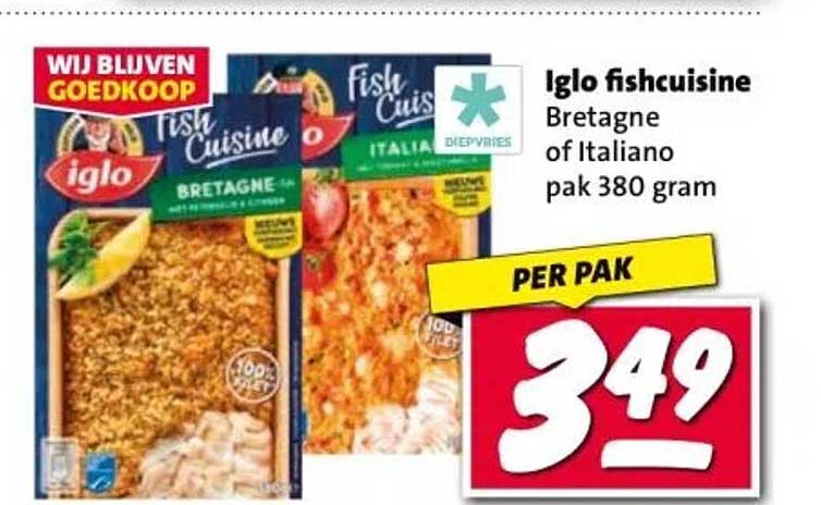 Bekijk nu de Iglo fishcuisine Bretagne of Italiano pak 380 gram aanbieding in de Nettorama folder. Deze aanbieding is geldig van 20-10-2025 tot en met 26-10-2025.