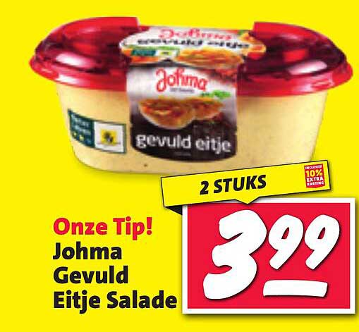 Normaal gesproken zou je voor een potje Johma Gevuld Eitje Salade een hogere prijs betalen. Met deze aanbieding van slechts €3,99 voor twee potten, krijg je waar voor je geld. Vergelijk dit met de gebruikelijke prijs en je begrijpt waarom deze aanbieding zo aantrekkelijk is. Dit is hét moment om je voorraad aan te vullen!