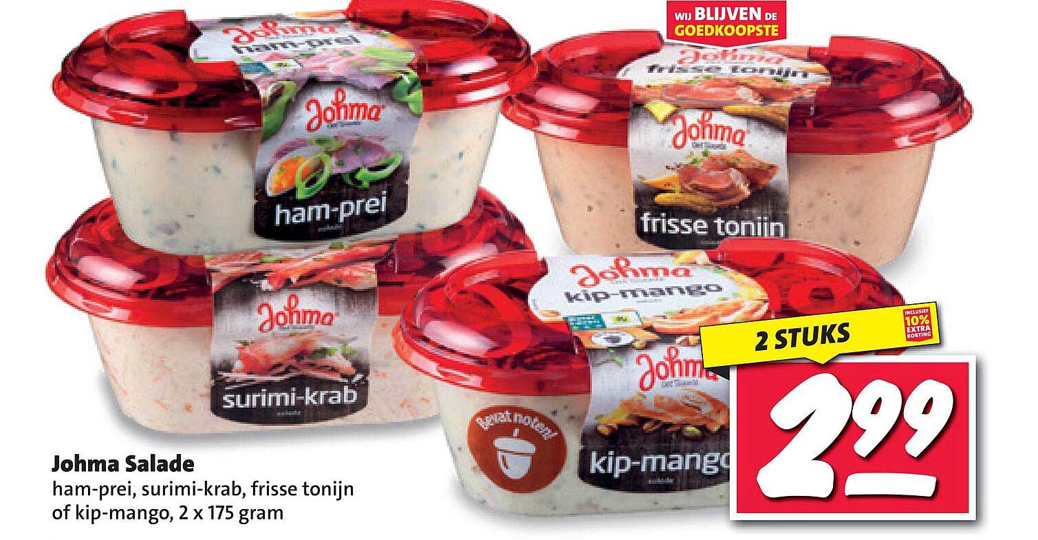 Ontdek de geweldige Johma Salade aanbieding in de nieuwste Nettorama folder. Naast deze aanbieding vind je nog veel meer aantrekkelijke kortingen. Je kunt de Johma Salade eenvoudig online bestellen via de Nettorama website of kopen in een winkel bij jou in de buurt.