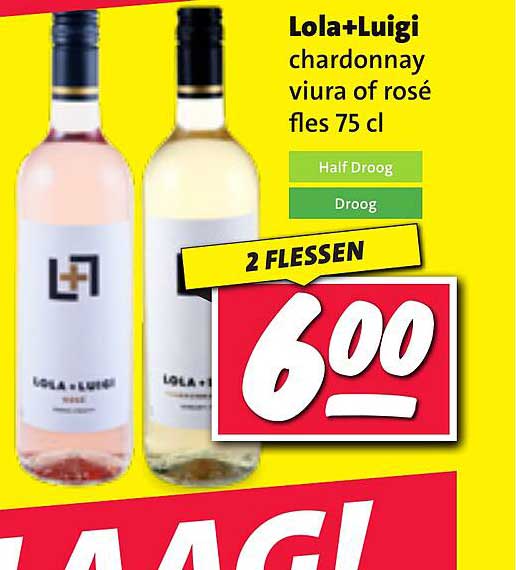 Bekijk nu de Lola+Luigi chardonnay viura of rosé fles 75 cl aanbieding in de Nettorama folder. Deze aanbieding is geldig van 07-04-2025 tot en met 13-04-2025.