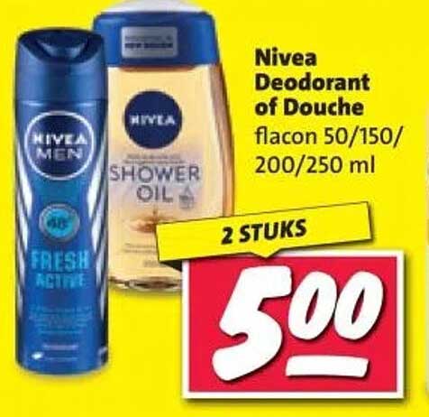 De Nivea Deodorant en Douche aanbieding is een perfecte kans om je persoonlijke verzorging naar een hoger niveau te tillen. Of je nu op zoek bent naar een verfrissende deodorant die lang meegaat of een heerlijke doucheolie die je huid hydrateert, deze aanbieding biedt het beste van beide werelden. Voor slechts €5,00 voor twee stuks kun je niet fout gaan!