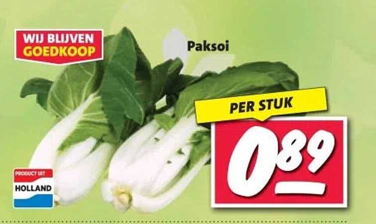 Normaal gesproken betaal je voor paksoi meer, maar tijdens deze aanbieding ben je slechts €0,89 kwijt per stuk. Dit betekent dat je met deze aanbieding flink kunt besparen op je boodschappen. Waarom meer betalen als je dit gezonde en lekkere alternatief voordelig kunt kopen? Begin vandaag met het toevoegen van meer groenten aan je dieet en profiteer van deze geweldige deal!