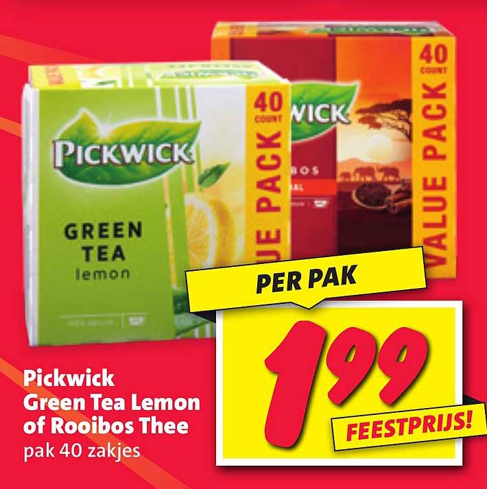 Bekijk nu de Pickwick Green Tea Lemon of Rooibos Thé aanbieding in de Nettorama folder. Deze aanbieding is geldig van 10-03-2025 tot en met 16-03-2025.