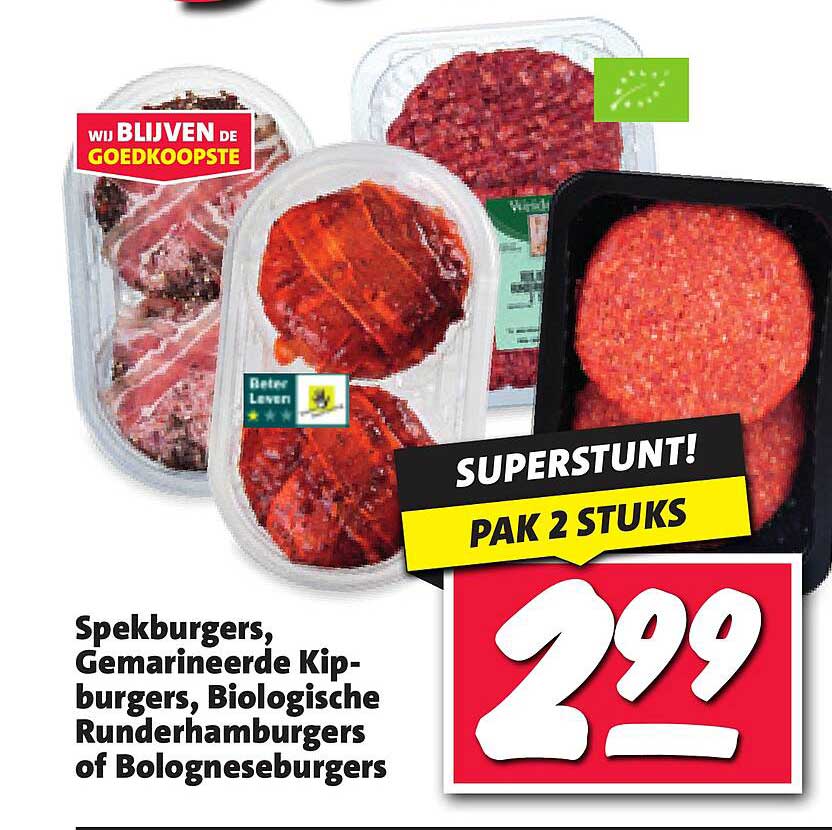 Spekburgers, Gemarineerde Kipburgers, Biologische Runderhamburgers Of Bologneseburgers aanbieding bij Nettorama