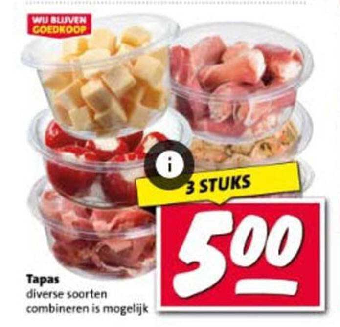 Voor slechts €5,00 krijg je maar liefst drie verschillende soorten tapas. Dit is een fantastische deal, want normaal gesproken betaal je veel meer voor losse tapas bij restaurants of cateraars. Met deze aanbieding geniet je niet alleen van een geweldige smaakervaring, maar ook van een flinke besparing!