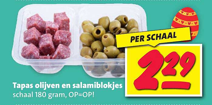 Heb je zin in een smaakvolle traktatie? Dan is deze aanbieding echt iets voor jou! De tapas olijven en salami blokjes van Nettorama zijn perfect voor een gezellige borrel, een feestje of gewoon om van te genieten tijdens een ontspannen avond thuis. Met een gewicht van 180 gram is deze schaal ideaal om te delen of om zelf van te genieten. Maar wees er snel bij, want OP=OP!