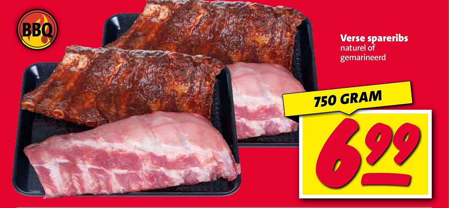 Ben je een liefhebber van BBQ en op zoek naar een overheerlijke maaltijd? Dan zijn de verse spareribs, verkrijgbaar in naturel of gemarineerd, precies wat je zoekt! Deze aanbieding is geldig van 9 tot en met 15 juni 2025 en is ideaal voor een gezellige barbecue met vrienden en familie. Geniet van malse ribben die je eenvoudig kunt bereiden en die de smaakpapillen zullen verwennen.