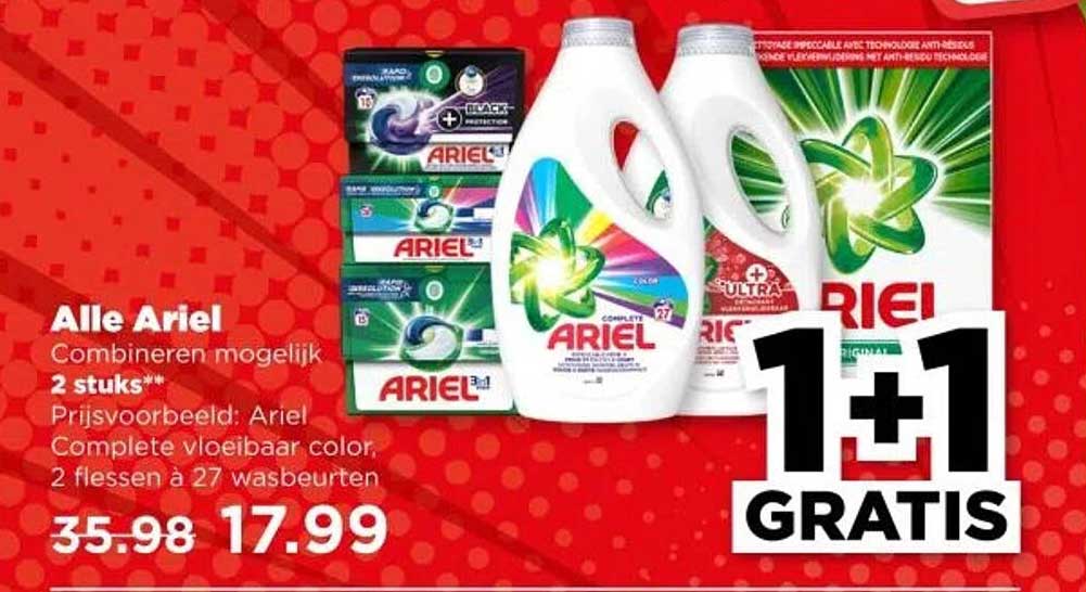 Bekijk de Alle Ariel aanbieding bij PLUS! Deze fantastische aanbieding is nu beschikbaar in de nieuwste PLUS folder. Profiteer van deze kans en bespaar flink op je aankoop.