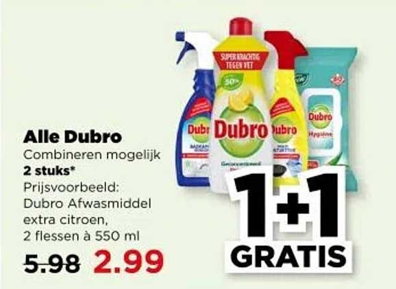 Bekijk de Alle Dubro aanbieding bij PLUS! Deze fantastische aanbieding is nu beschikbaar in de nieuwste PLUS folder. Profiteer van deze kans en bespaar flink op je aankoop.