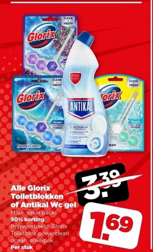 Bekijk de Alle Glorix Toiletblokken Of Antikal Wc Gel aanbieding bij PLUS! Deze fantastische aanbieding is nu beschikbaar in de nieuwste PLUS folder. Profiteer van deze kans en bespaar flink op je aankoop.