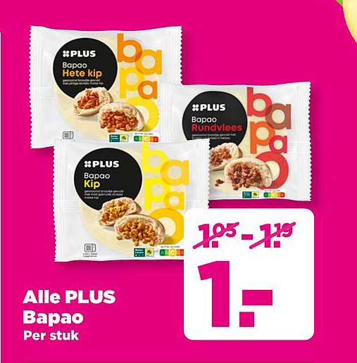 Bekijk de Alle Plus Bapao aanbieding bij PLUS! Deze fantastische aanbieding is nu beschikbaar in de nieuwste PLUS folder. Profiteer van deze kans en bespaar flink op je aankoop.
