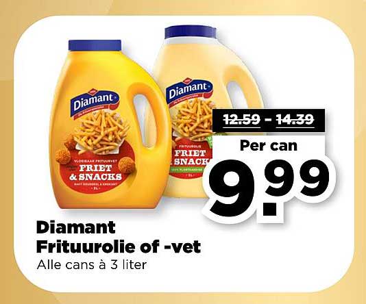 Bekijk de Diamant Frituurolie Of -Vet aanbieding bij PLUS! Deze fantastische aanbieding is nu beschikbaar in de nieuwste PLUS folder. Profiteer van deze kans en bespaar flink op je aankoop.