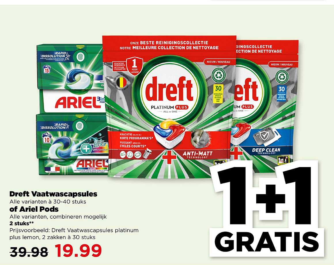 Bekijk de Dreft Vaatwascapsules aanbieding bij PLUS! Deze fantastische aanbieding is nu beschikbaar in de nieuwste PLUS folder. Profiteer van deze kans en bespaar flink op je aankoop.