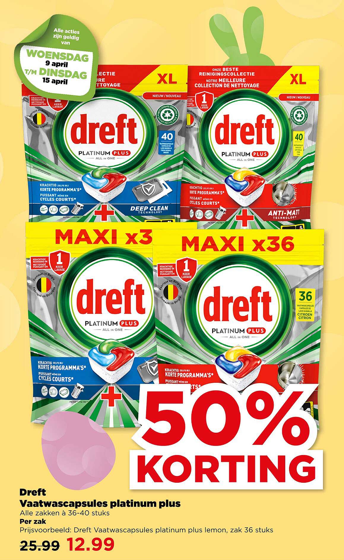 Ben je op zoek naar een effectieve oplossing voor je vaat? Dan is deze aanbieding van Dreft perfect voor jou! Met de Dreft Vaatwascapsules platinum plus profiteer je van een royale korting van 50%. Je betaalt nu slechts €12,99 in plaats van €25,99 voor een zak van 36-40 capsules. Dit is een geweldige kans om je afwas snel en efficiënt te laten schijnen, zonder te veel te besteden.