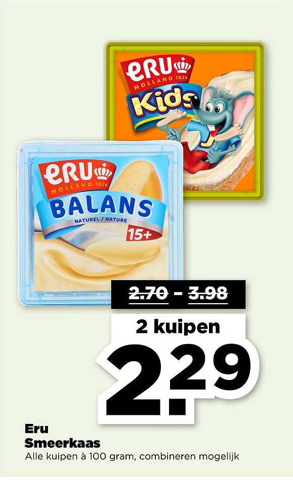 Bekijk de Eru Smeerkaas aanbieding bij PLUS! Deze fantastische aanbieding is nu beschikbaar in de nieuwste PLUS folder. Profiteer van deze kans en bespaar flink op je aankoop.