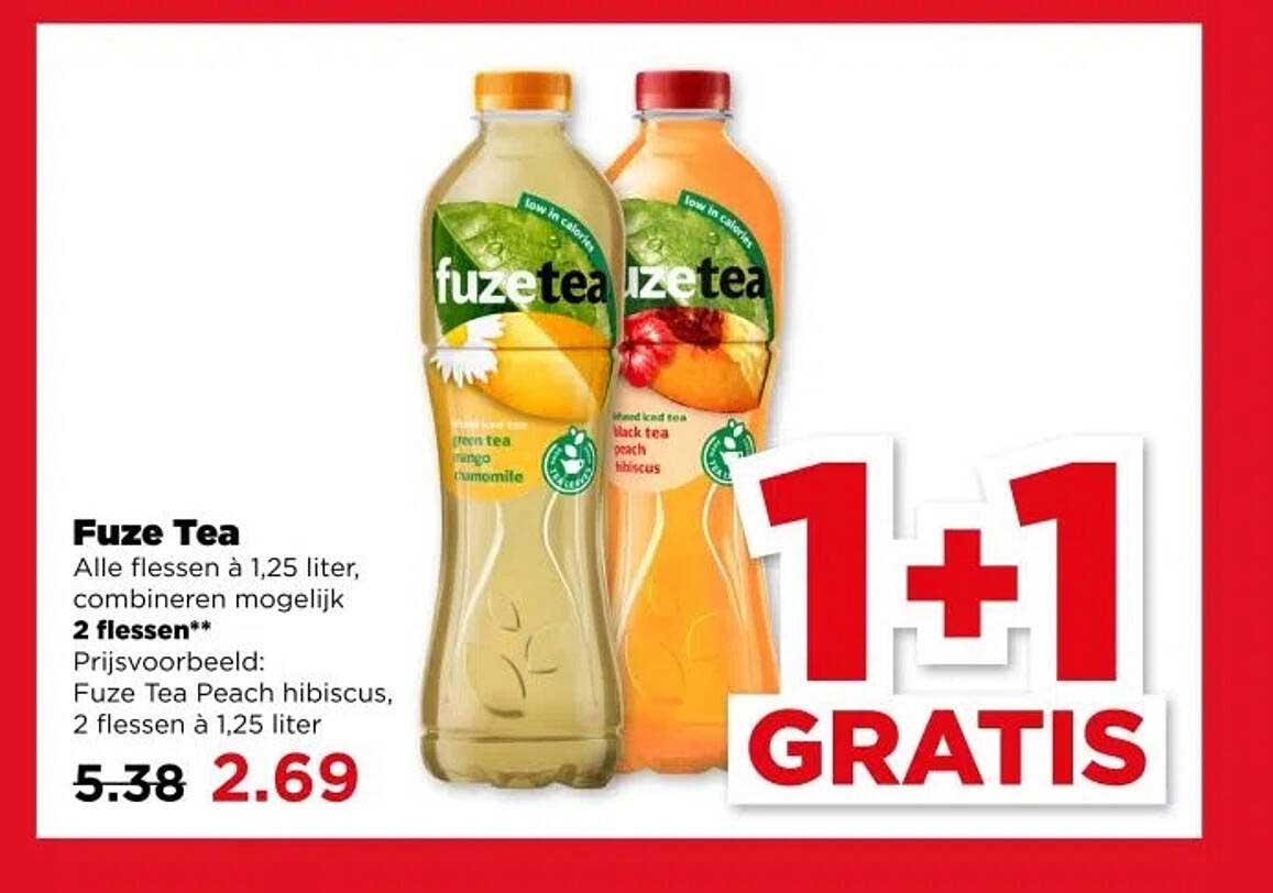 Wat nou als je deze week dubbel zo veel plezier uit je drankje kunt halen? Met de Fuze Tea aanbieding heb je de mogelijkheid om twee flessen voor de prijs van één mee naar huis te nemen! Perfect om te delen of gewoon voor jezelf, want wie kan nou weerstaan aan de verfrissende smaken van Fuze Tea? Geniet van een lichte dorstlesser die perfect is voor elke gelegenheid, of je nu een barbecue organiseert of gewoon wilt ontspannen op de bank.